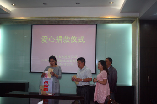 近日,區(qū)自來水公司、惠民公司主動結(jié)合黨的群眾路線教育實踐活動“惠民實事工程”的開展,積極響應(yīng)市民觀察團和小艷子志愿者協(xié)會的倡議,在公司內(nèi)進行廣泛深入宣傳,組織廣大干部職工為武堅鎮(zhèn)身患尿毒癥的女大學(xué)生凌金華進行愛心捐款。在6月26日下午的捐款儀式上,公司領(lǐng)導(dǎo)和水益坊志愿者組織、三大創(chuàng)建班組(便民維修班、中心化驗室、城區(qū)供水服務(wù)中心)以及勞模先進代表踴躍帶頭,公司各部門干部職工積極參與,紛紛伸出援助之手,慷慨解囊,奉獻出自己的愛心,在不到1個小時的捐款活動中,共募集12600元愛心善款。此筆捐款已于6月28日隨區(qū)市民觀察團、小艷子志愿者協(xié)會、江都論壇的特別“愛心快車”送到正在上海住院治療的凌金華手中。