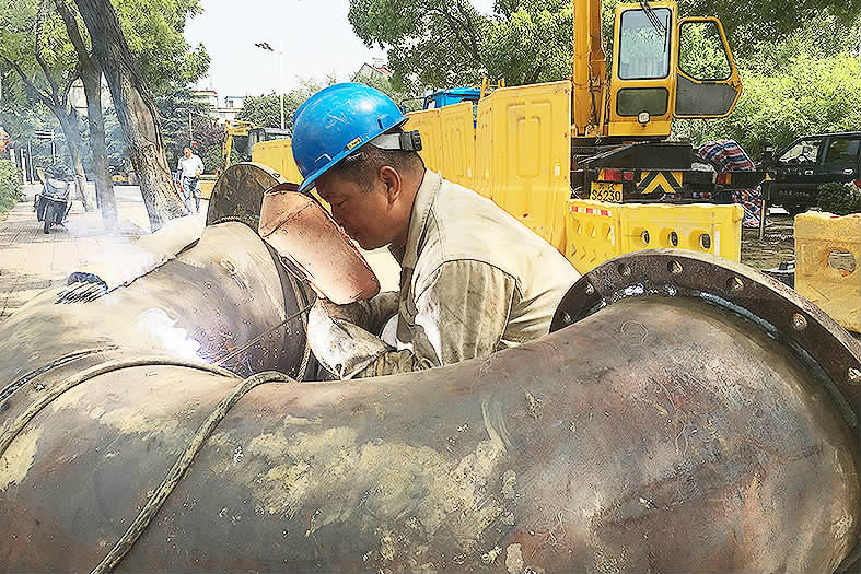 焊接管道是自來水管網(wǎng)連接的常見作業(yè)工種。戴上嚴(yán)嚴(yán)實(shí)實(shí)的防護(hù)面罩,穿上厚厚的勞保服,戴上手套,焊工朱忠東臉上掛滿汗珠,衣服已經(jīng)濕透,可他顧不上擦拭,埋頭繼續(xù)工作。他告訴記者,夏天焊接,雖然天氣炎熱,但還是必須穿得嚴(yán)嚴(yán)實(shí)實(shí),手腳皮膚都不能裸露,防止被電焊時(shí)產(chǎn)生的火星灼傷。