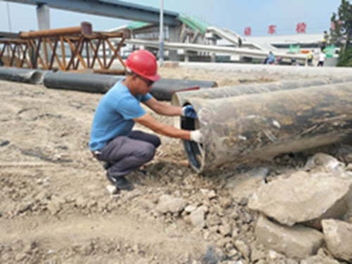 正值三伏天,雖然高溫?zé)崂艘u人,也阻擋不了城市供水人鋪設(shè)供水管道的進(jìn)程。在老淮江路雙徐路至華山路拓寬改造現(xiàn)場(chǎng),龍川控股水務(wù)有限公司的安裝人員嚴(yán)慶章,正忙著鋪設(shè)自來(lái)水管道,汗水從額頭滾落下來(lái),眼睛被迷糊了,順手一抹,手中的活沒(méi)停。汗衫被汗浸濕得像從水里剛撈上來(lái)似的。