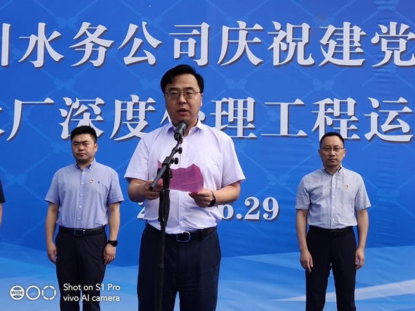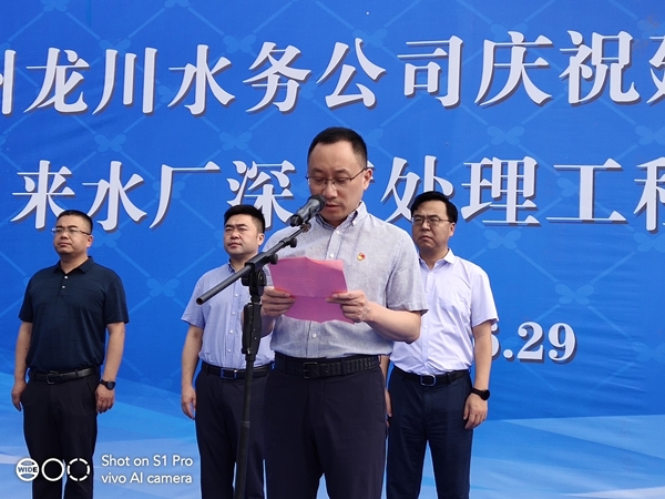 副區(qū)長楊曉榮同志代表區(qū)委、區(qū)政府作重要講話,首先對龍川水務(wù)公司第二、三水廠深度處理工程的竣工投運(yùn)表示熱烈的祝賀,并強(qiáng)調(diào)指出,水是經(jīng)濟(jì)社會(huì)發(fā)展的重要基礎(chǔ)和關(guān)鍵命脈,龍川控股集團(tuán)委托深圳環(huán)水投資集團(tuán)運(yùn)營龍川水務(wù)后,水務(wù)公司能緊緊圍繞民生所需、民眾所期、民心所盼,大力實(shí)施放心水、優(yōu)質(zhì)水工程,積極推進(jìn)供水支管網(wǎng)改造和污水管網(wǎng)、農(nóng)村污水處理設(shè)施建設(shè),為全區(qū)水生態(tài)文明建設(shè)作出了突出的貢獻(xiàn),龍川水務(wù)公司整體的質(zhì)態(tài)也有了較大的飛躍。希望以今天的通水儀式為新的起點(diǎn),不忘初心,牢記使命,乘風(fēng)破浪,穩(wěn)健前行,進(jìn)一步推進(jìn)供水事業(yè)發(fā)展,為江都的社會(huì)穩(wěn)定、經(jīng)濟(jì)發(fā)展做出更大的貢獻(xiàn)。
