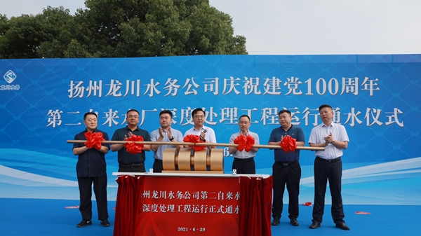 6月29日上午,在喜迎中國共產(chǎn)黨百年華誕之際,揚(yáng)州龍川水務(wù)公司在第二自來水廠隆重舉行深度處理工程運(yùn)行通水儀式。江都區(qū)副區(qū)長楊曉榮、發(fā)改委副主任王安國、住建局副局長高翔宇、水務(wù)局副局長高寅峰、衛(wèi)健委副主任劉俊杰,以及揚(yáng)州龍川控股集團(tuán)黨委書記、董事長朱成勇,黨委副書記、總經(jīng)理高鵬應(yīng)邀出席活動(dòng)。龍川控股集團(tuán)各單位代表、龍川水務(wù)全體領(lǐng)導(dǎo)班子成員、中層干部及其下屬各單位三級以上管理人員、全體黨員以及工程建設(shè)、施工、監(jiān)理單位代表170余人參加了運(yùn)行通水儀式。