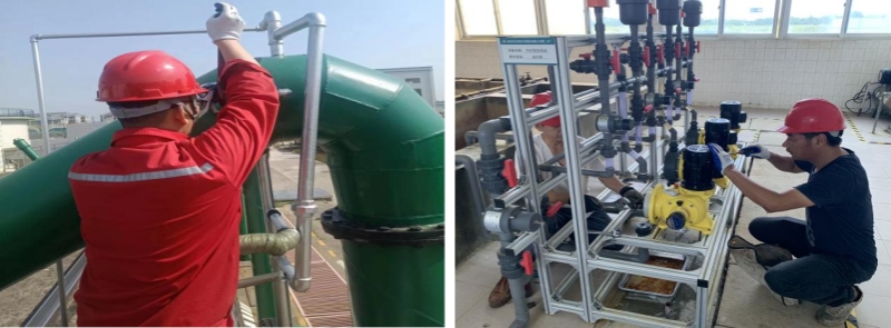 設(shè)施維護(hù)方面,第二、三水廠制水運行人員增加供水設(shè)施的巡查頻次,細(xì)致察看設(shè)備的運行狀況。機(jī)電維修人員每天按計劃對供水設(shè)施進(jìn)行定期保養(yǎng),做好三級維修保養(yǎng)記錄,保障生產(chǎn)的穩(wěn)定。
