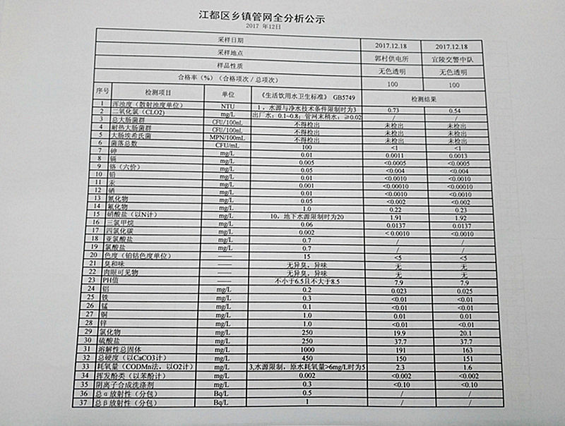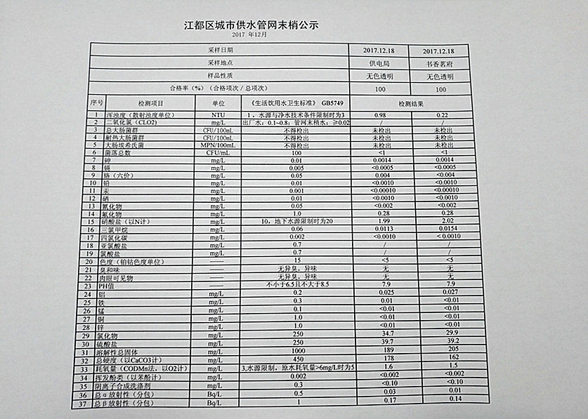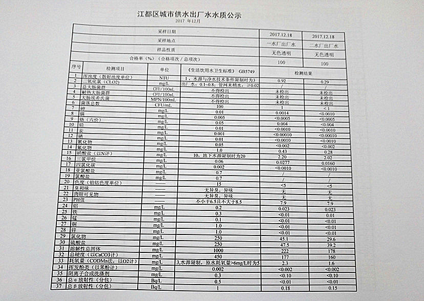 水質(zhì)公示
