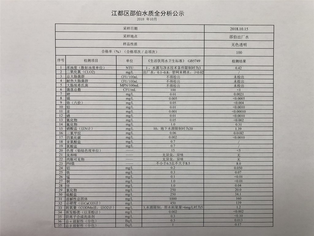 水質(zhì)公示
