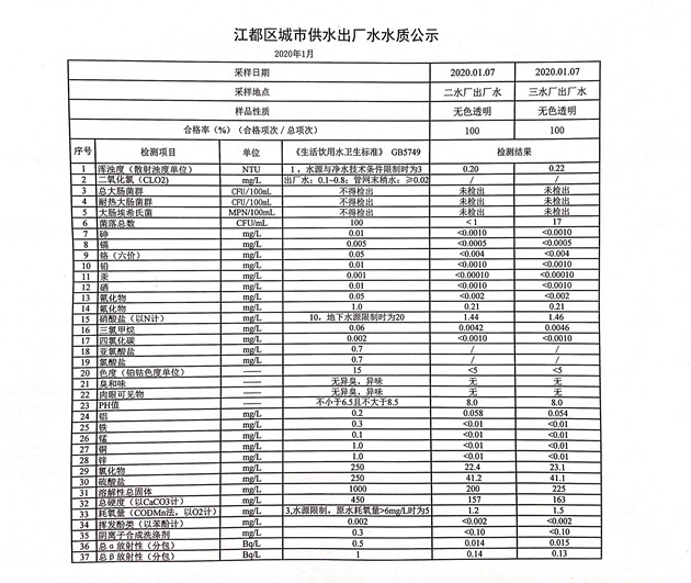 水質(zhì)公示