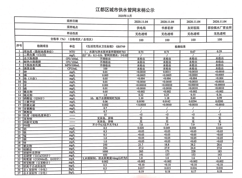 水質(zhì)公示
